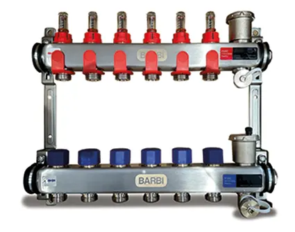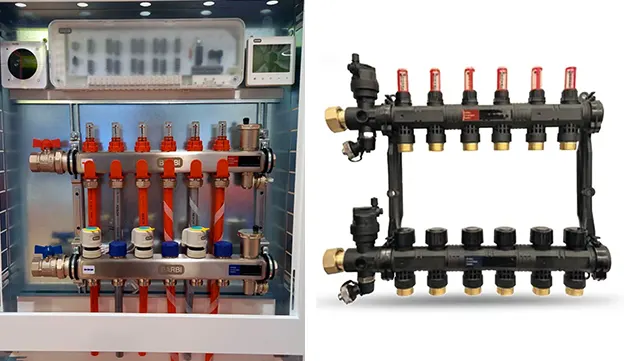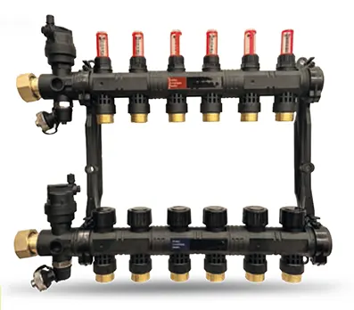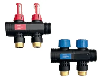 - Collecteur de retour avec vannes thermostatiques intégrées.